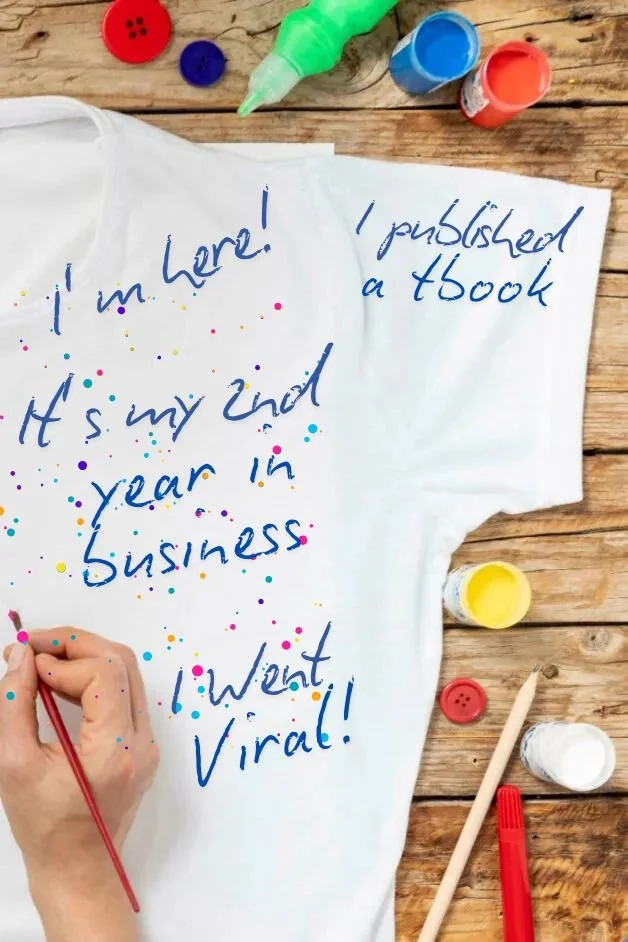 Celebrate your business milestones—big or small. Bring (or create on-site) a white T-shirt and write one word or short phrase that represents a recent win in your business journey. Examples: anniversary, went viral, new lease, published a book, first hire, revenue milestone—your win, your word.